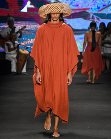 A coleção traz um trabalho de cestarias nas roupas e acessórios e por isso leva o nome “Tramas”. Considerado um patrimônio cultural dos povos originários, a técnica aparece em cintos, corsets e pelerines e acessórios de cabeça confeccionados artesanalmente com fibras de arumã e tucum por 16 comunidades indígenas distintas. O nome também se refere a essa rede de conexões ancestrais.